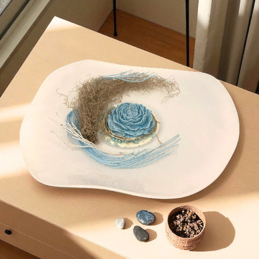 Prezzo scontato €0,00Centrotavola in ceramica bianca 60x60 cm. di diametro con base di cera... -