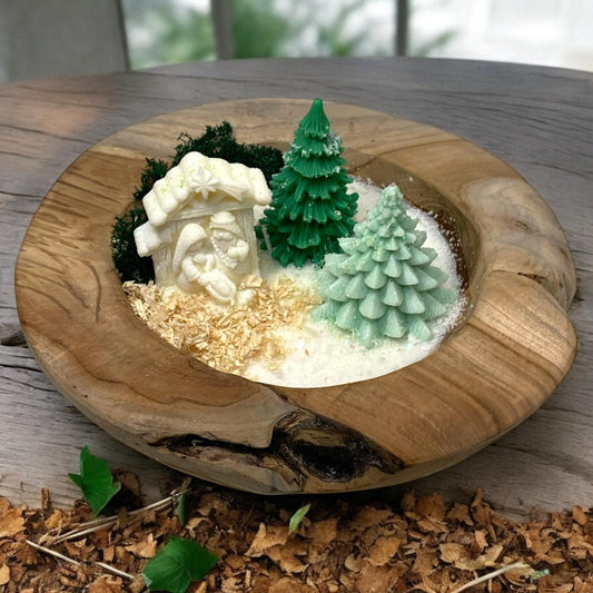 Prezzo scontato €0,00Centrotavola natalizio, composto da vassoio in legno color salvia, base di cera... -